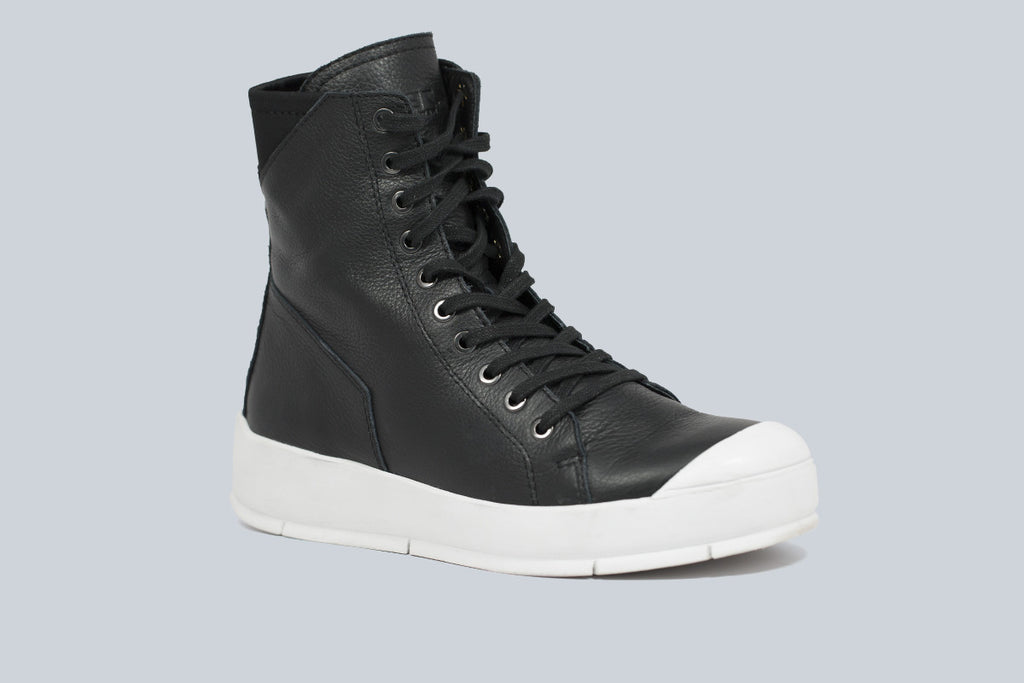 Racer platform lace up combat sneaker with neoprene cushion back.